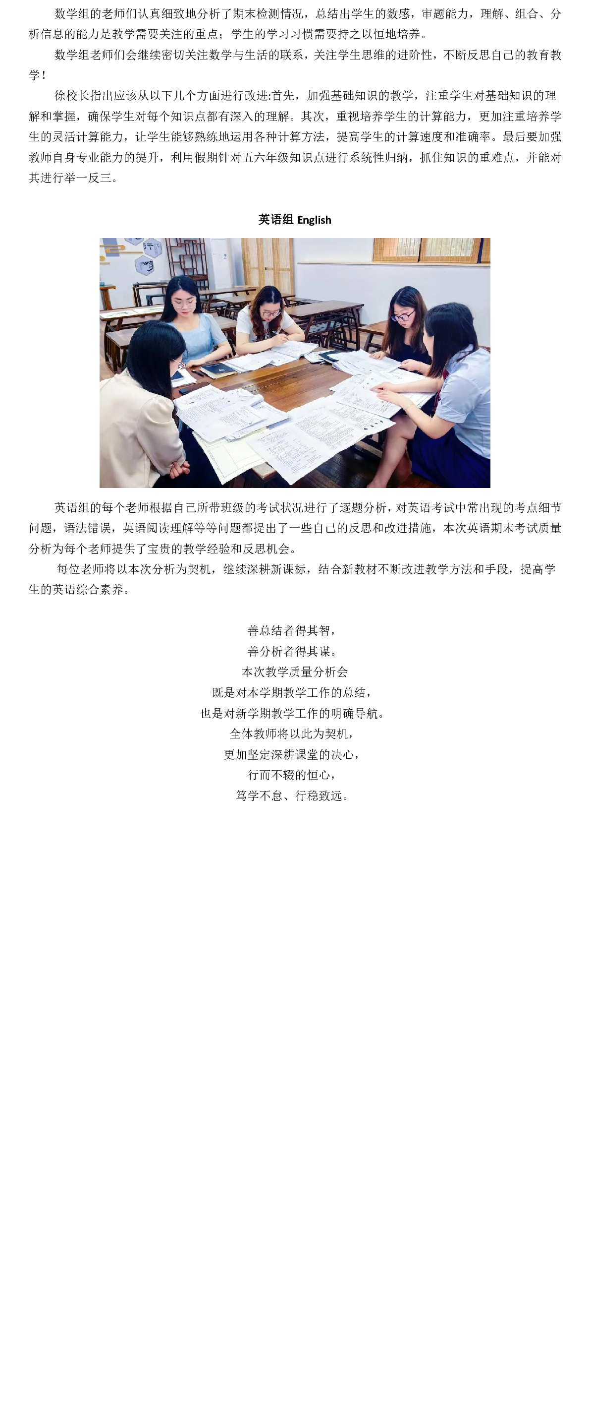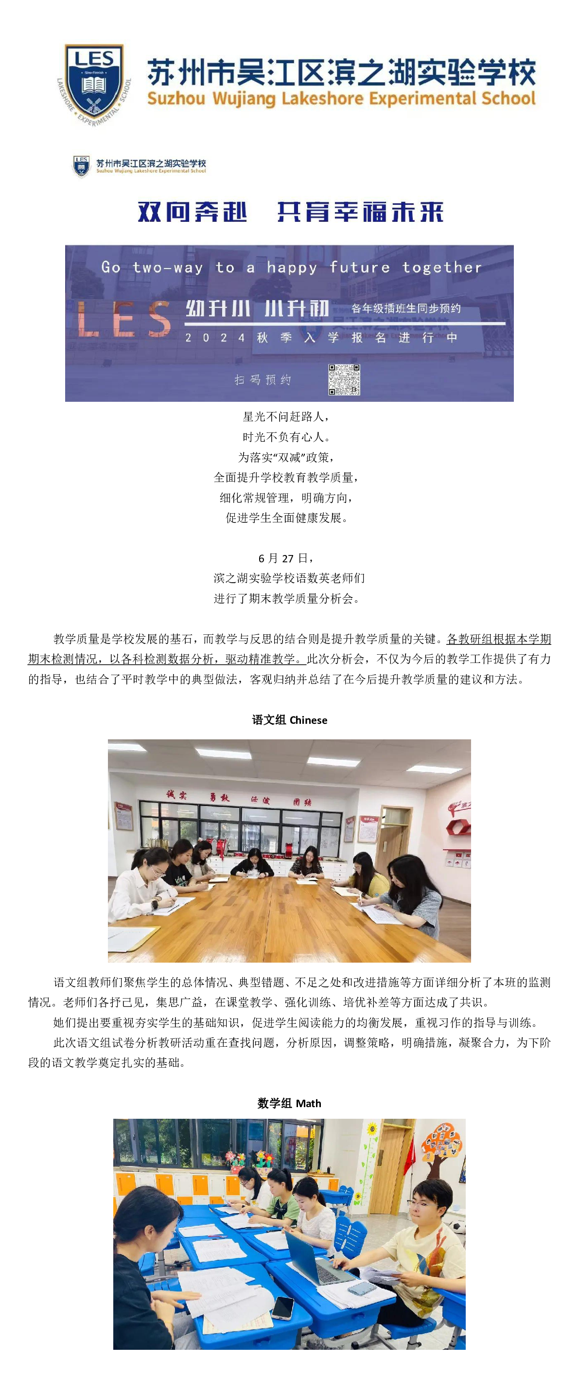 以终为始促成长,行有方向以致远——滨之湖实验学校2023-2024学年第二学期期末质量分析会