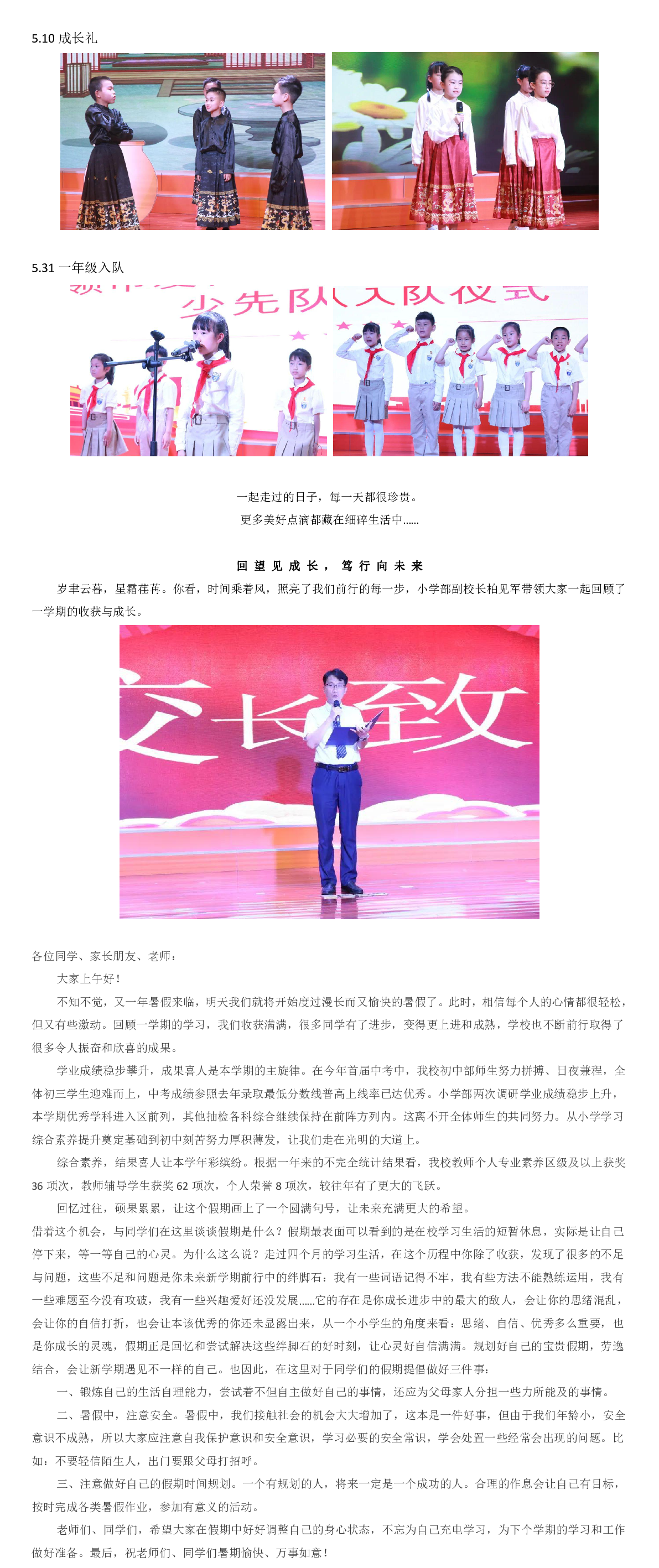 回望见成长,笃行向未来——滨之湖实验学校2023-2024学年第二学期休业式