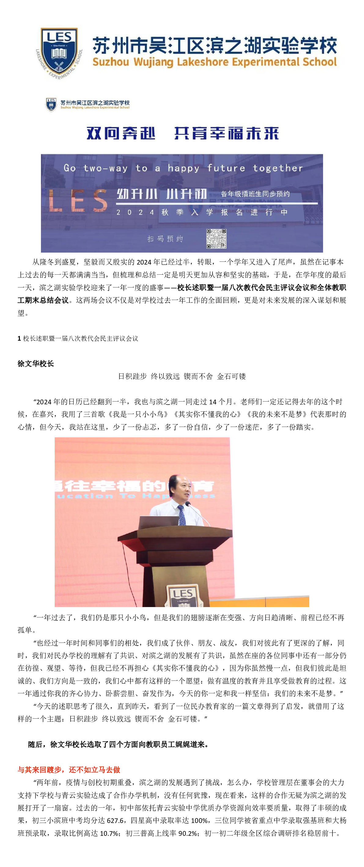 奋楫笃行 履践致远——滨之湖学年度校长述职&学期总结会