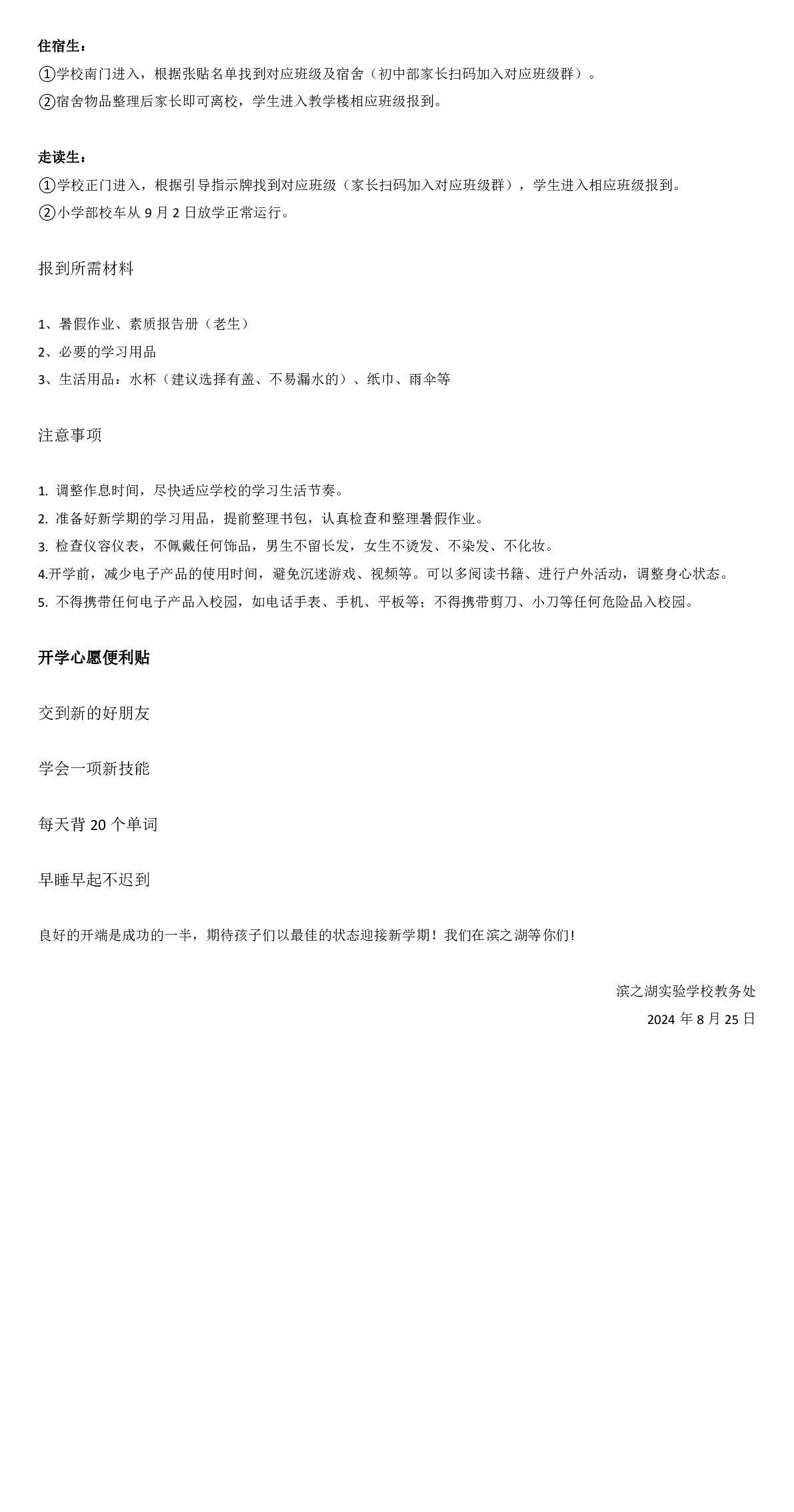 滨之湖实验学校2024年秋季插班生入学申请通知