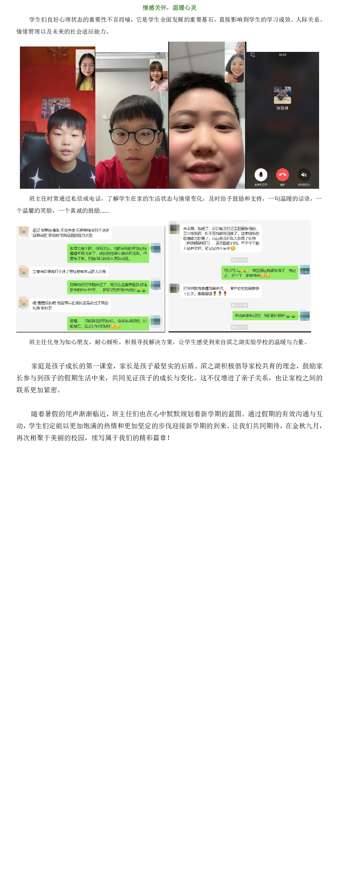 润心细语,共筑成长——滨之湖实验学校暑期家校面对面