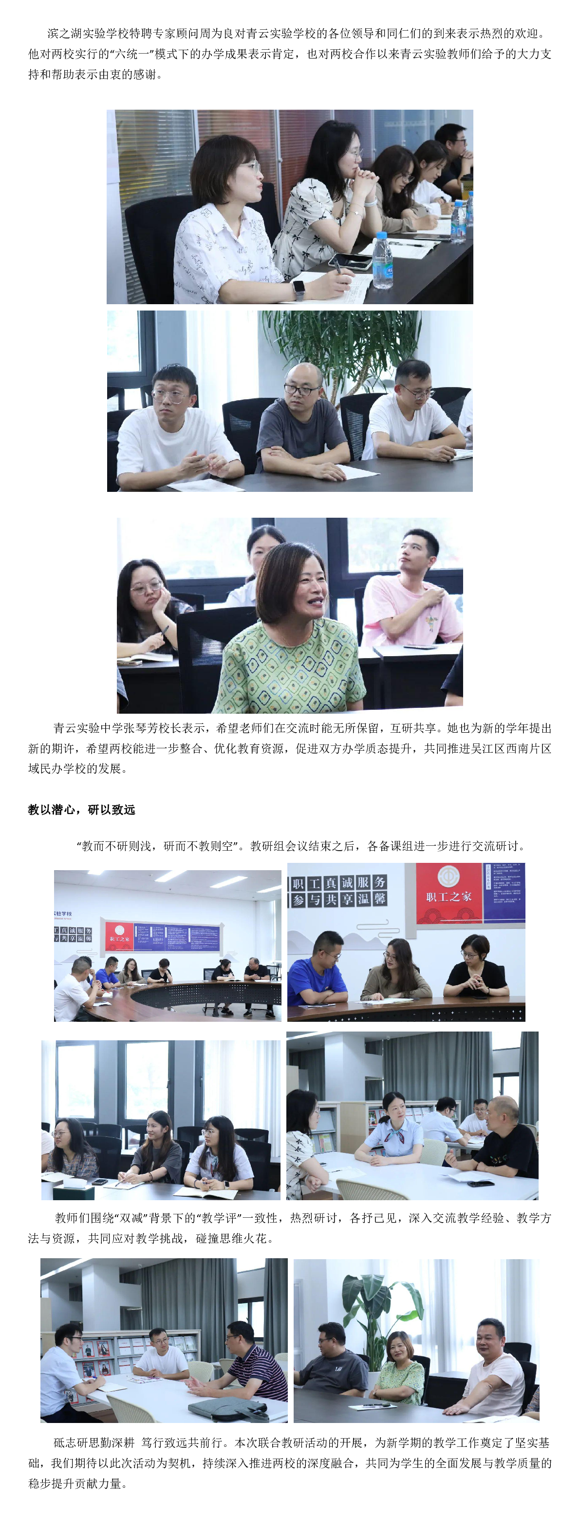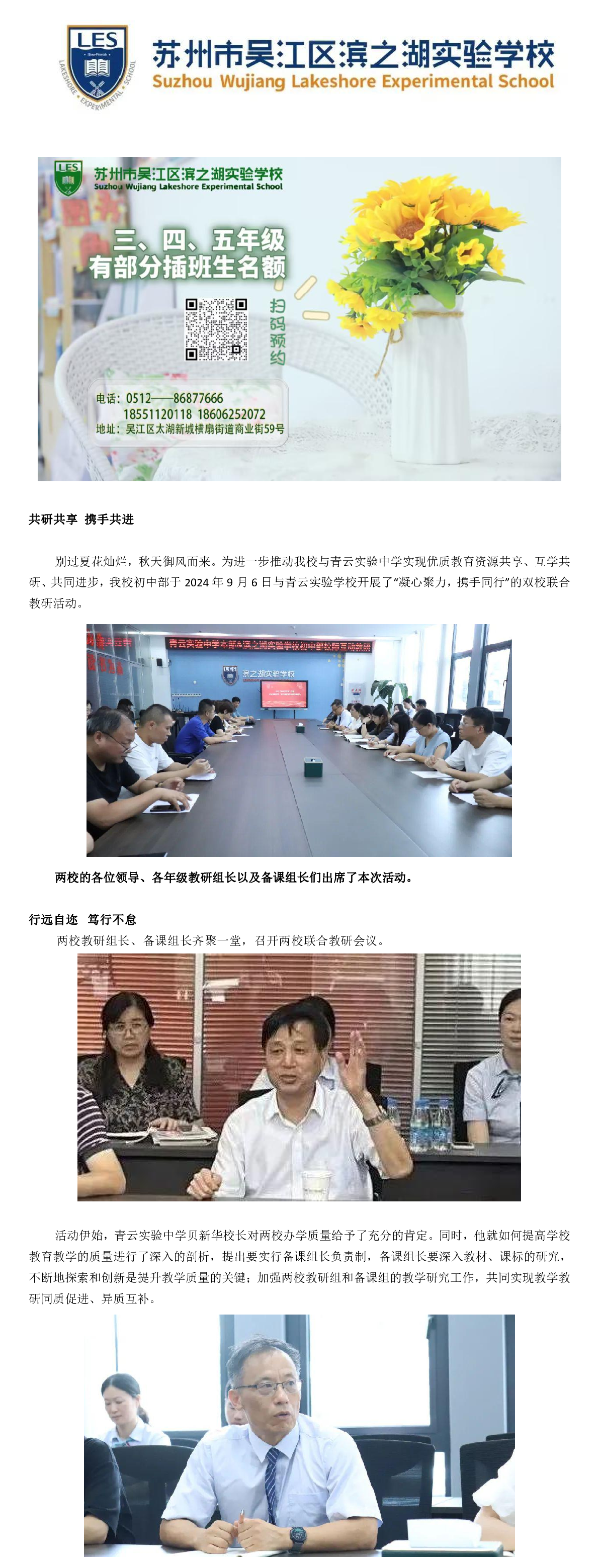携手教研共成长,砥砺深耕促发展——青云实验中学&滨之湖实验学校初中部联合教研活动
