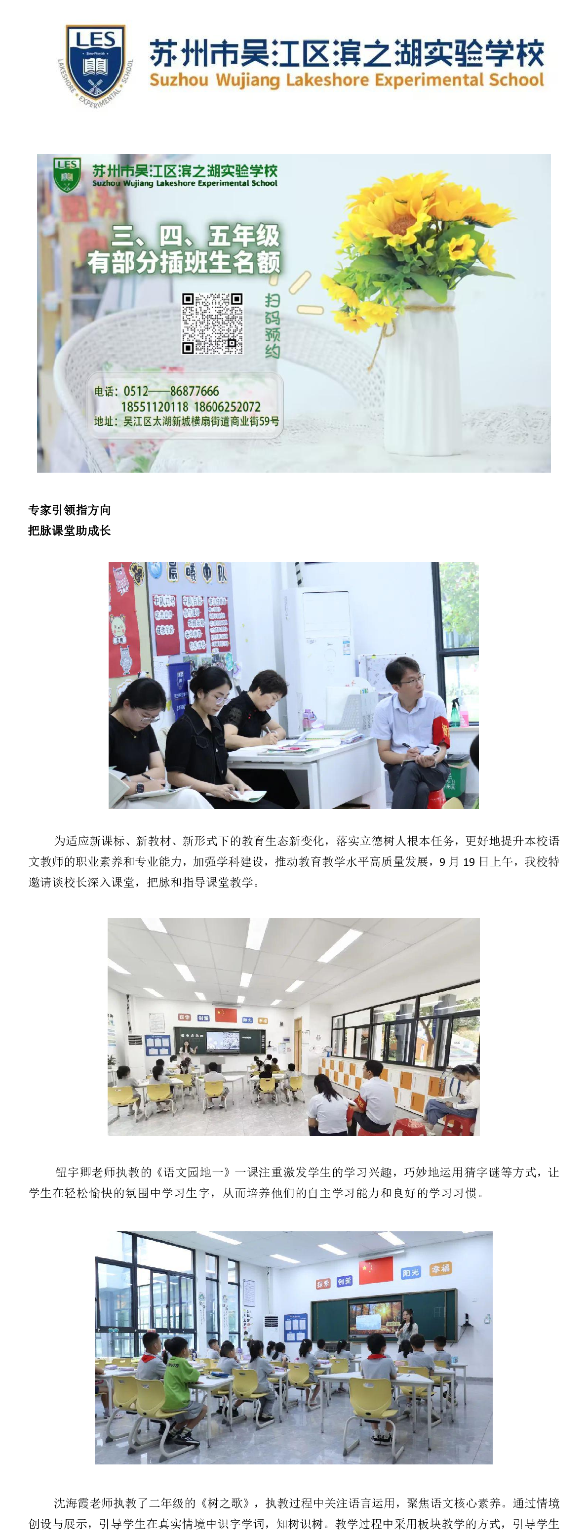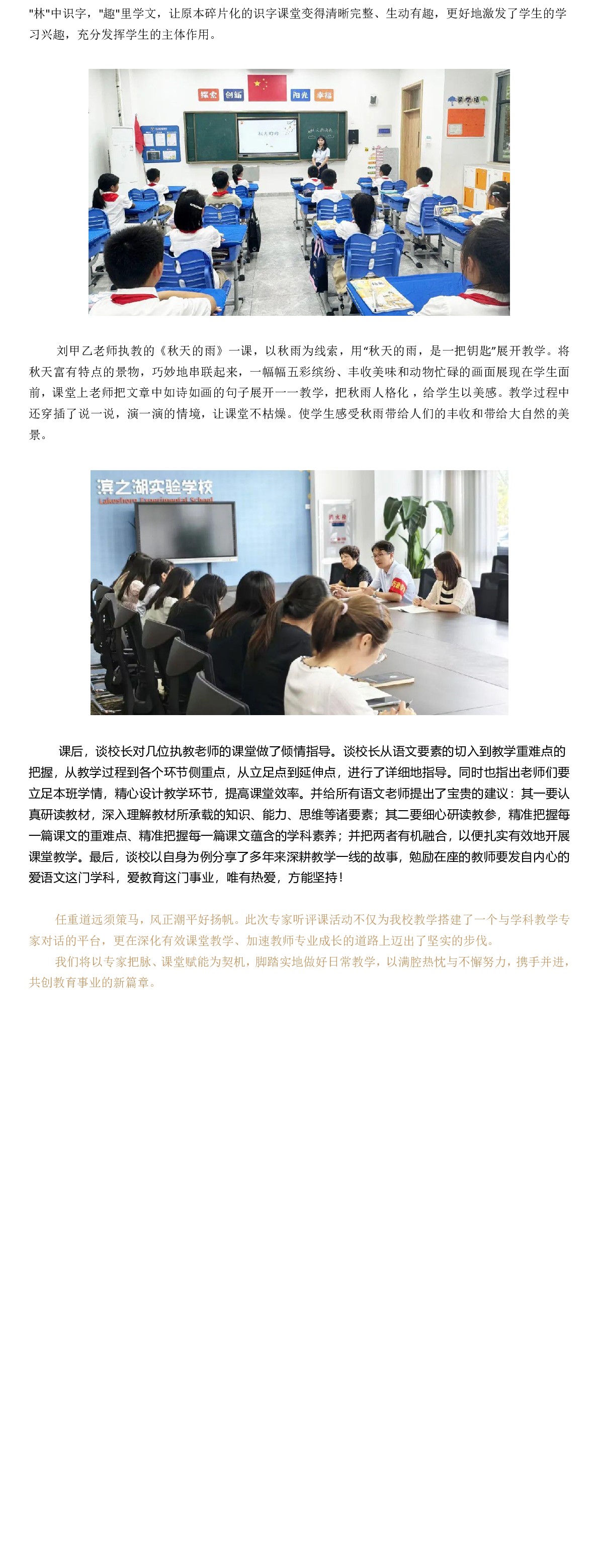 专家引领指方向 把脉课堂助成长———谈校长深入滨之湖实验学校语文组指导课堂教学