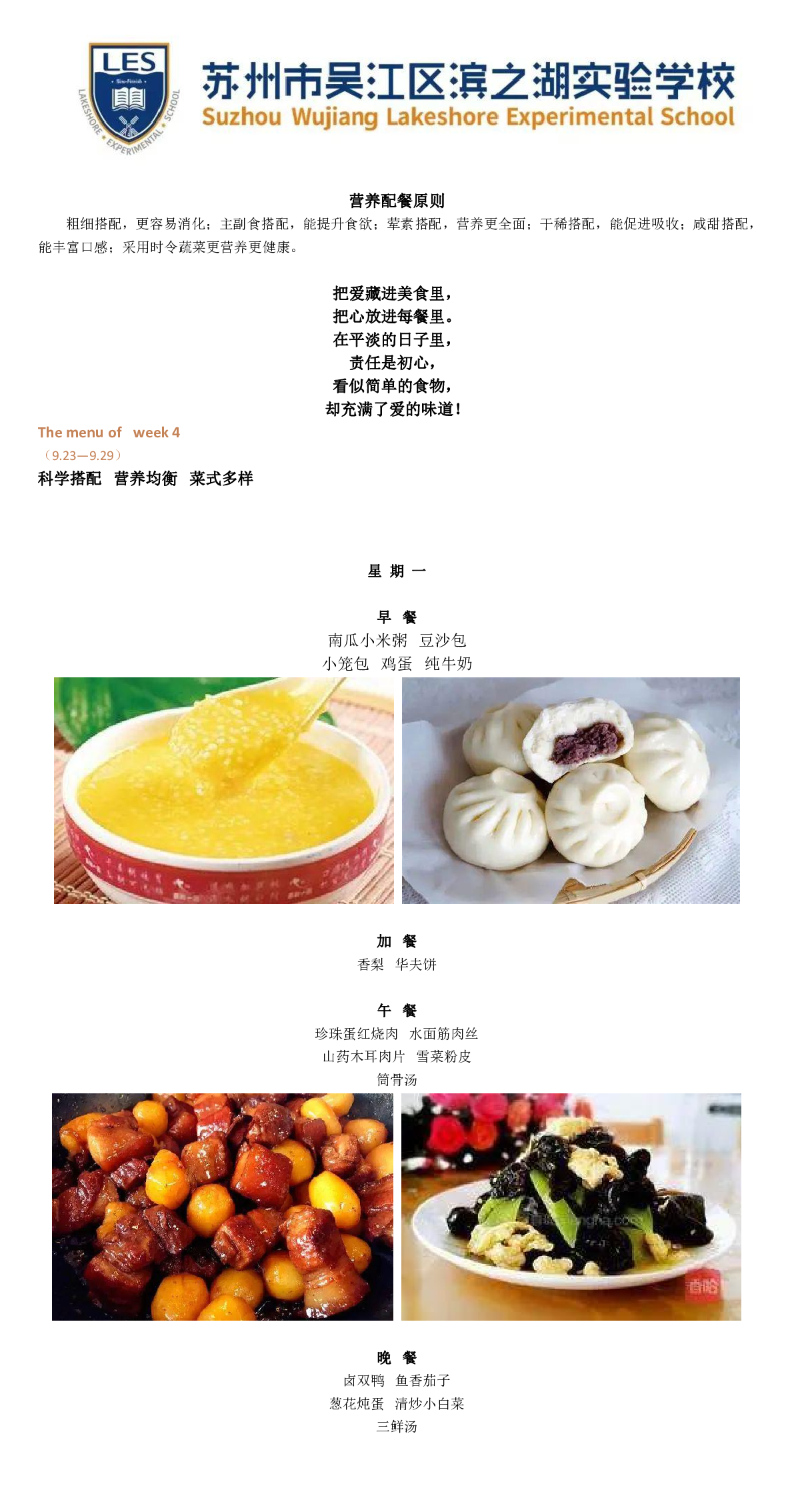 Menu for week 4 | 滨之湖实验学校美味食谱