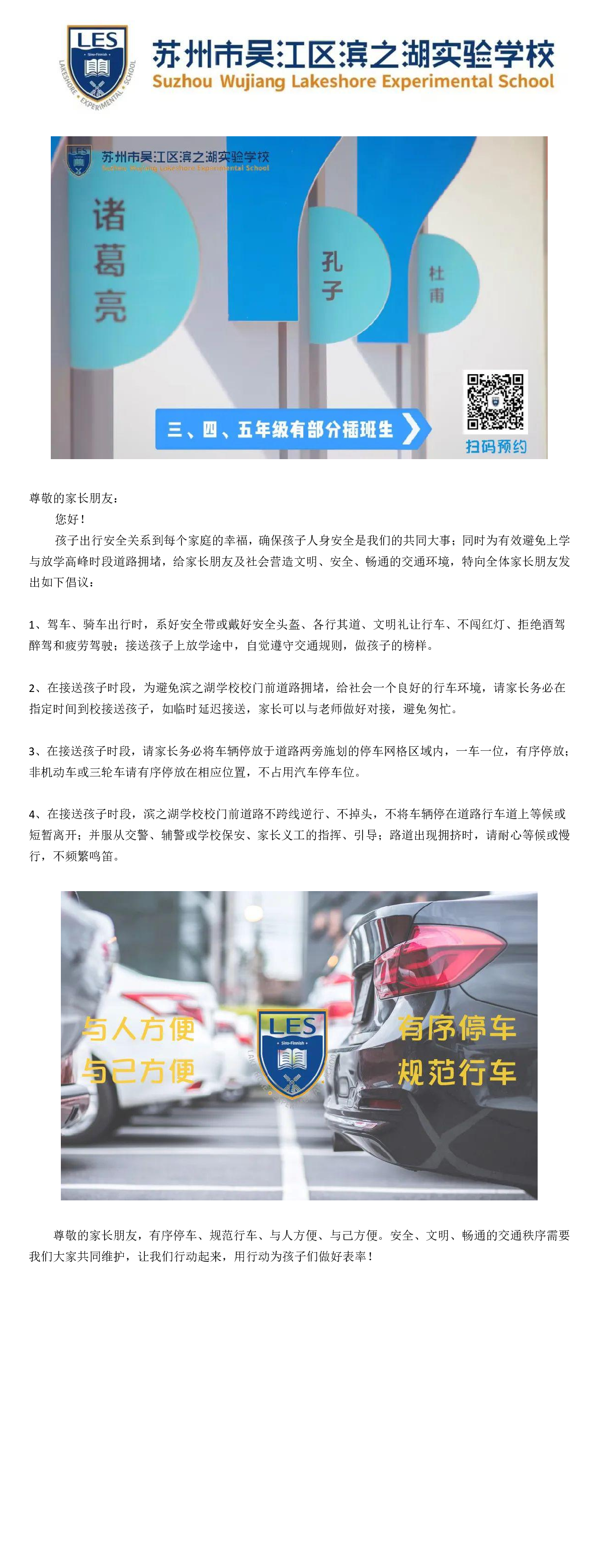 滨之湖实验学校规范行车有序停车倡议书