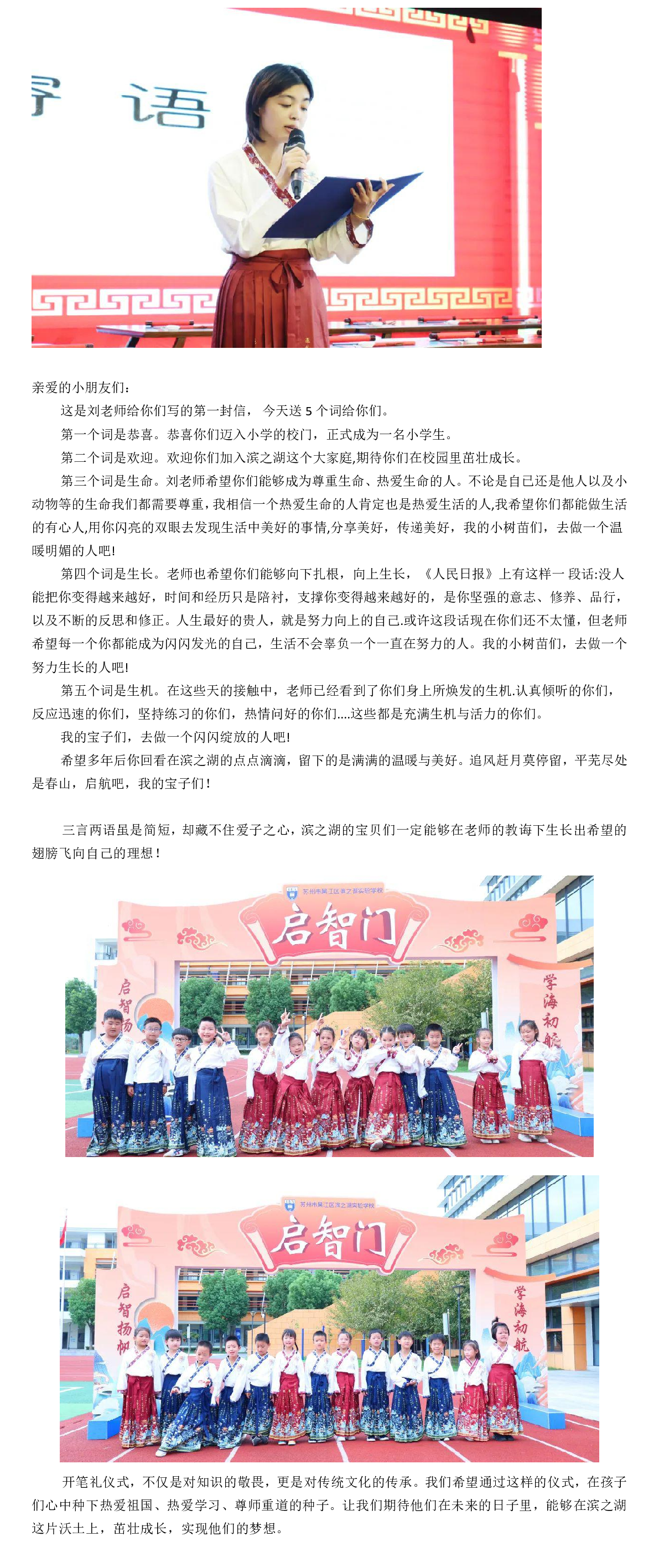 学海初航,启智扬帆!滨之湖这场“开笔礼”仪式感满满