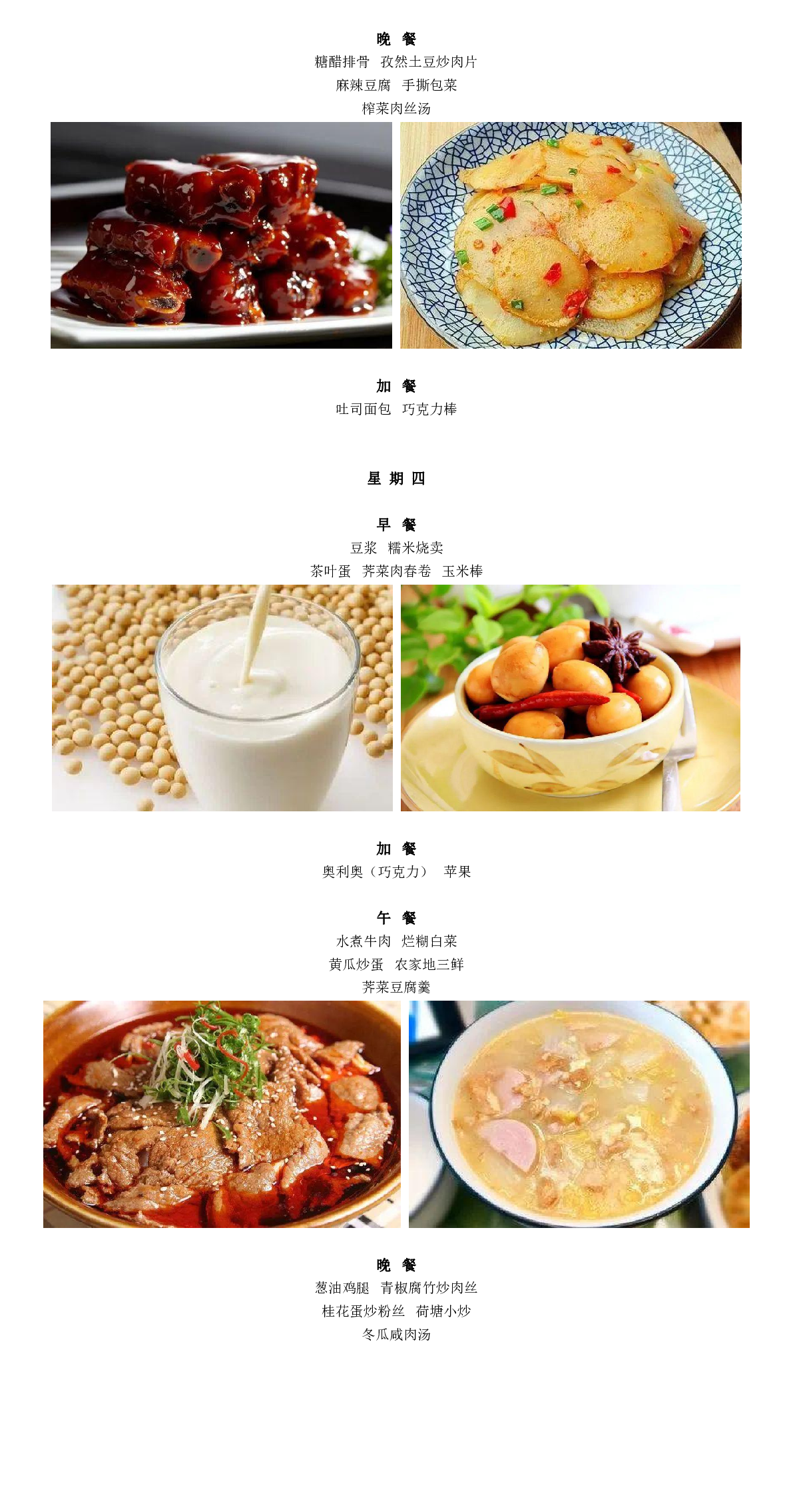 每周食谱