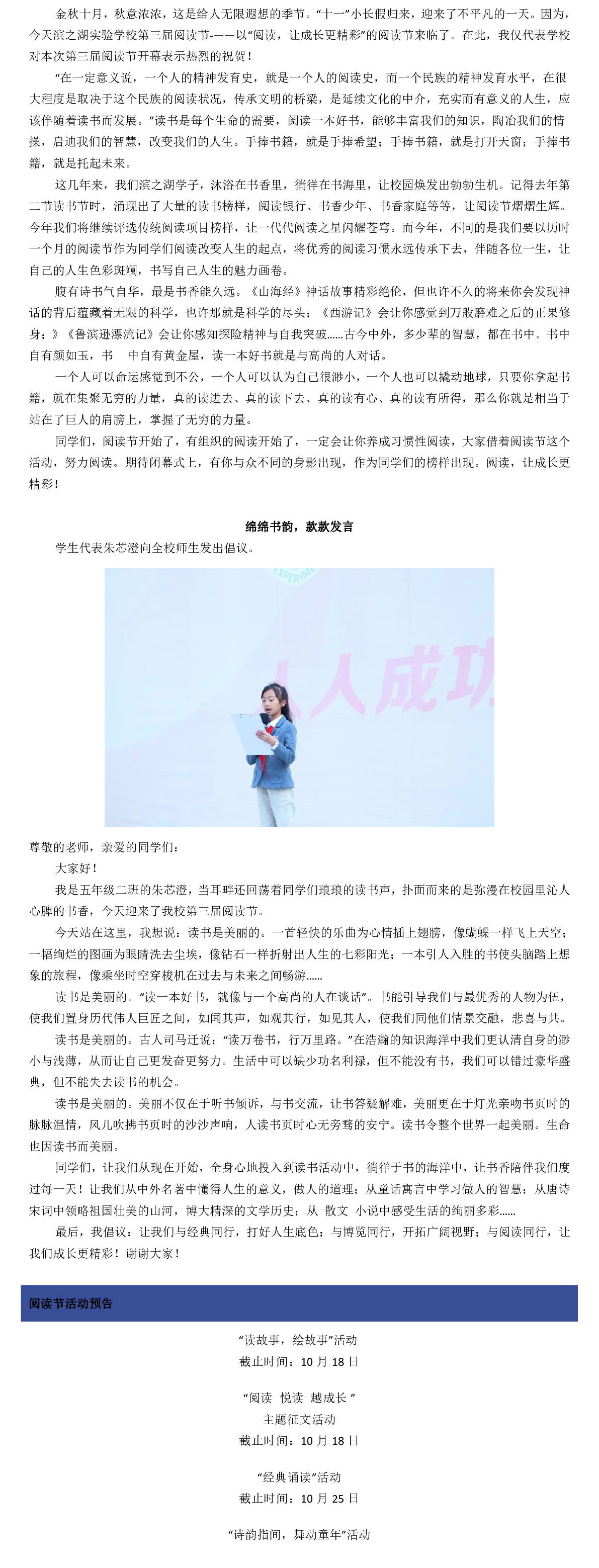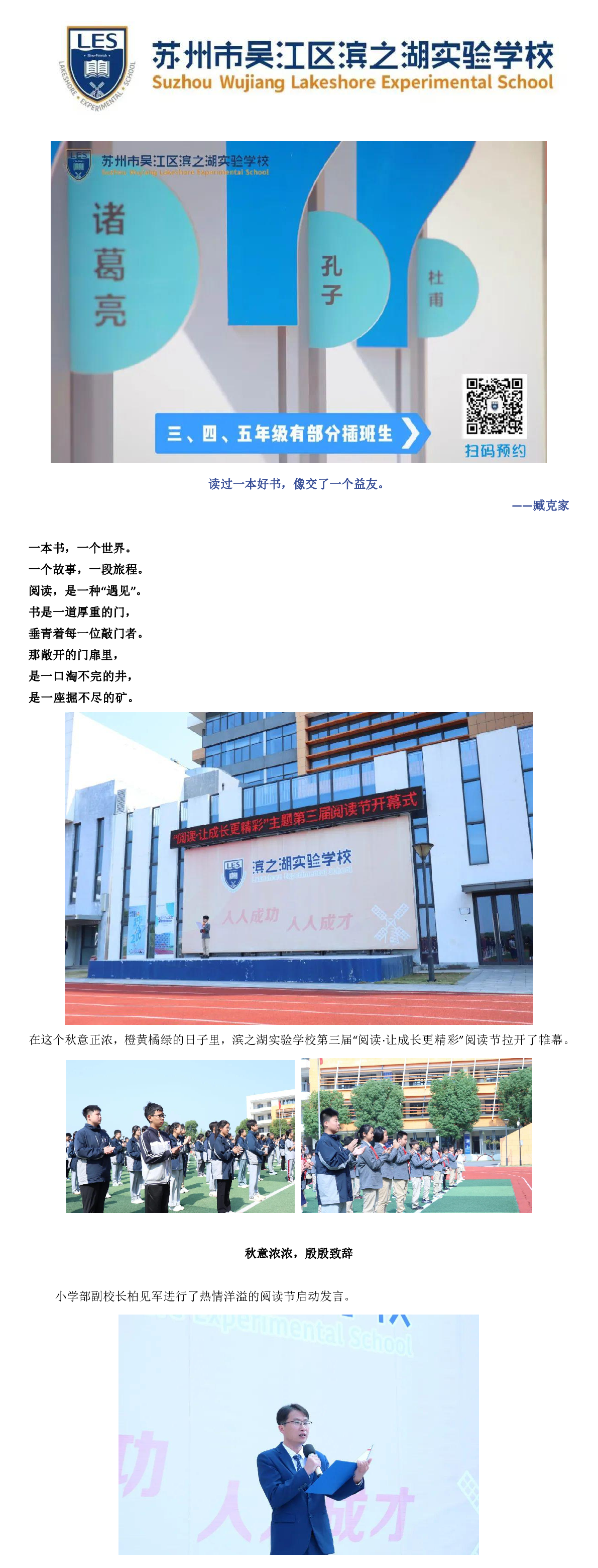 书香浸润心灵,阅读伴我成长——滨之湖实验学校第三届阅读节活动开幕系列(一)