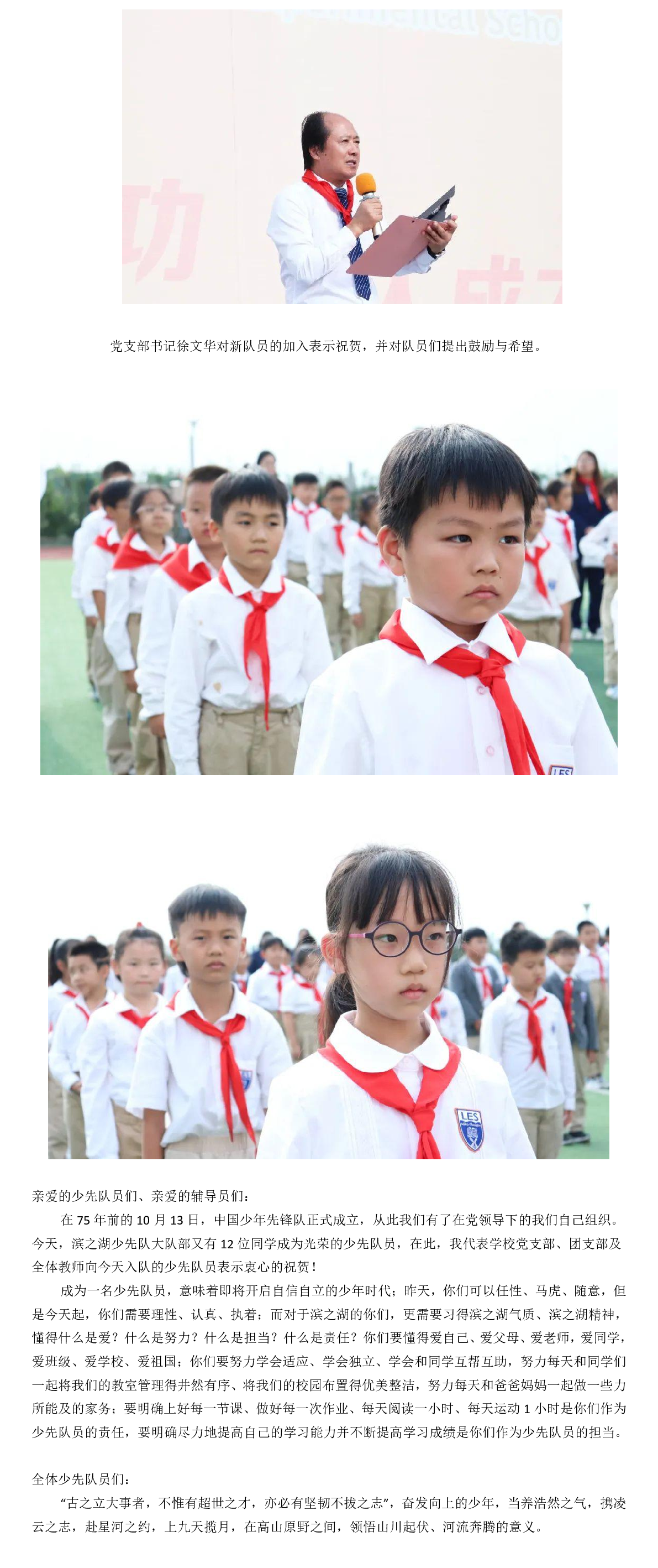 “红领巾爱祖国,争做新时代好队员”——滨之湖实验学校一年级新队员入队仪式...