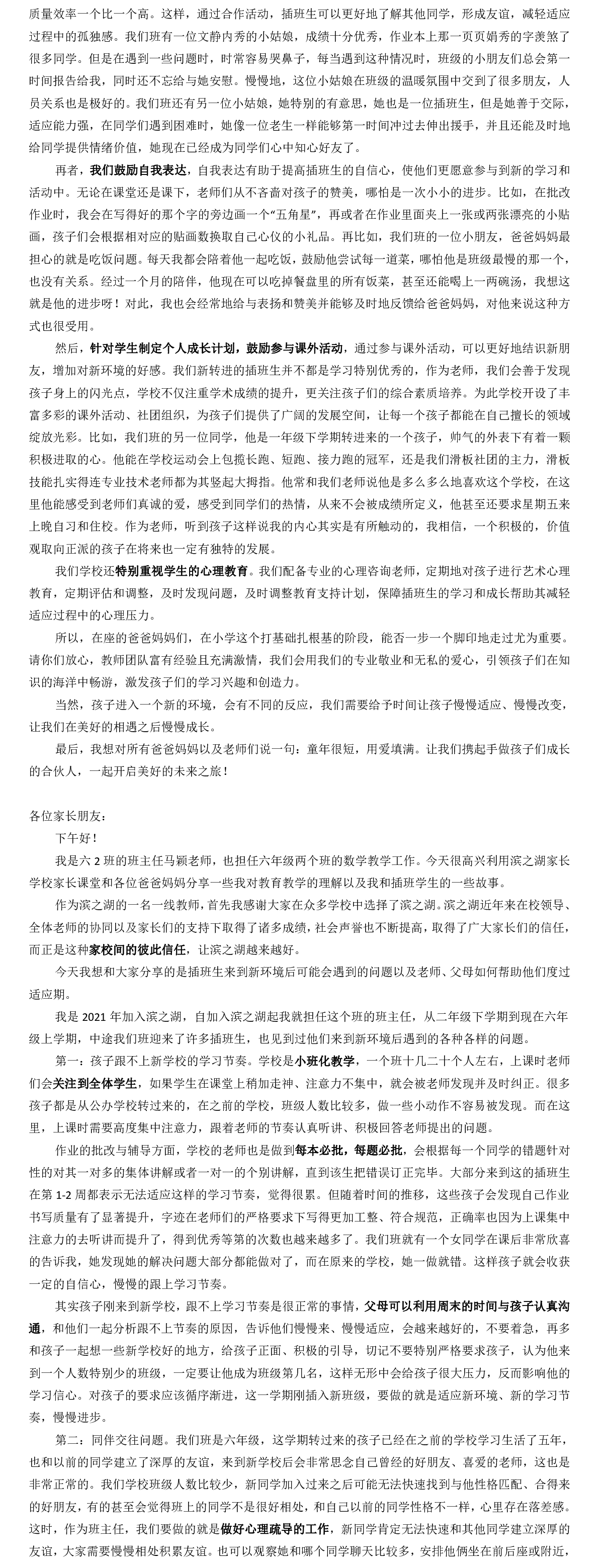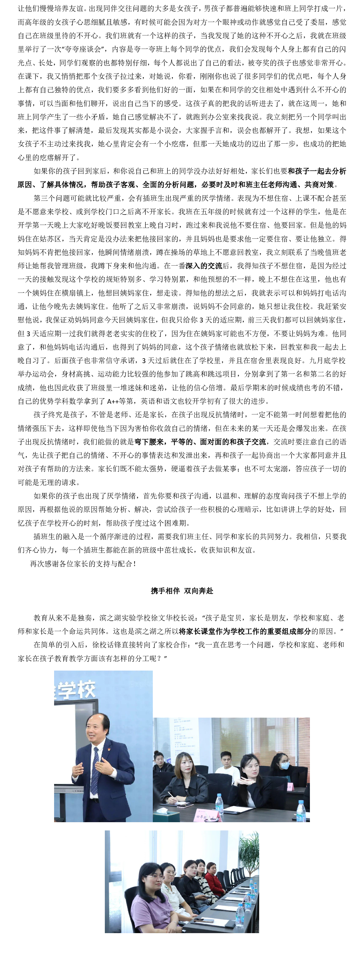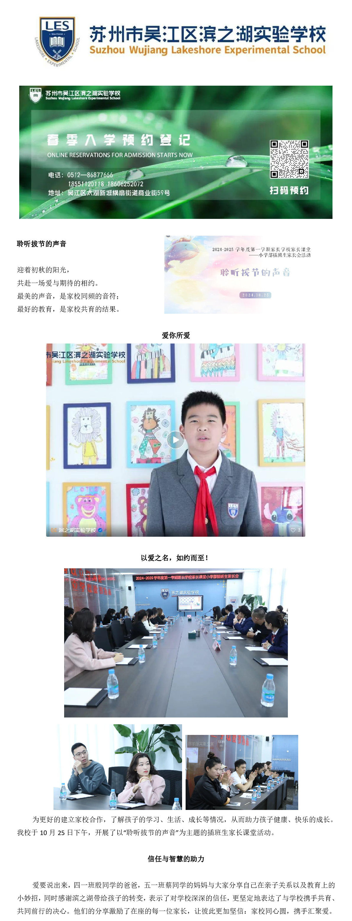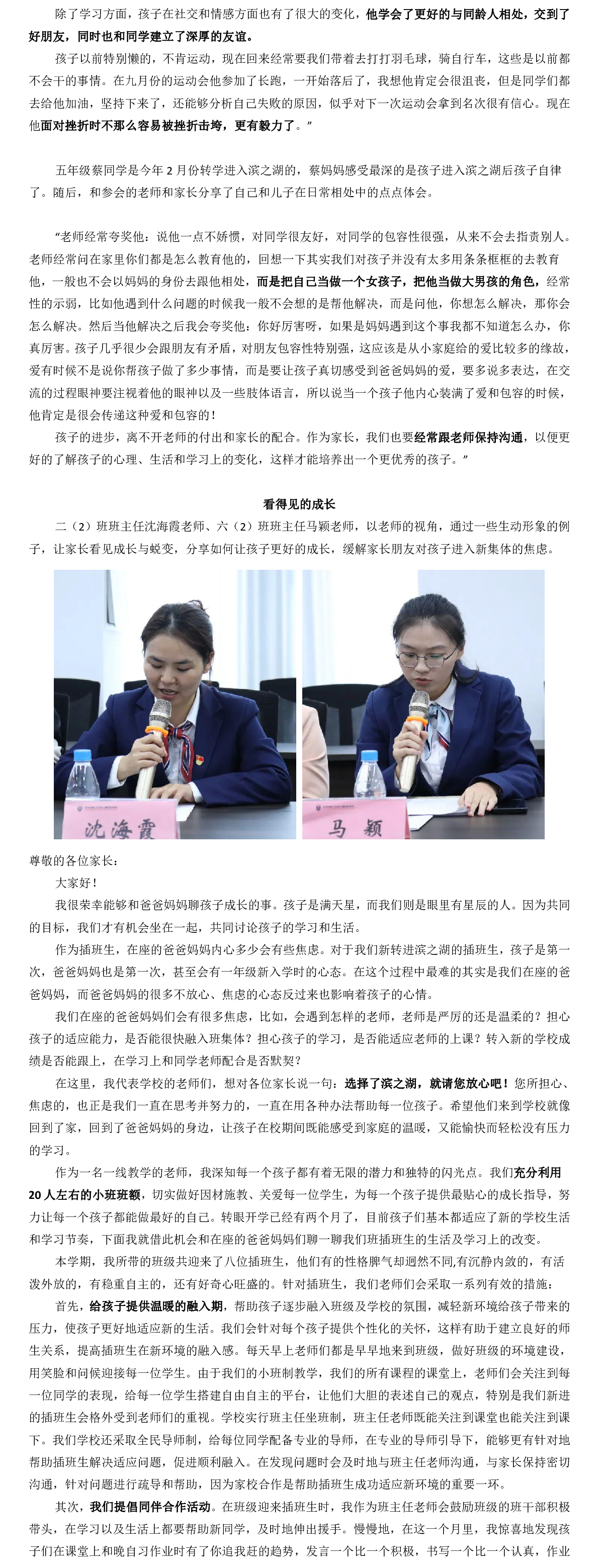 “聆听拔节的声音” ——2024~2025 学年度第一学期滨之湖实验学校插班生家长课堂