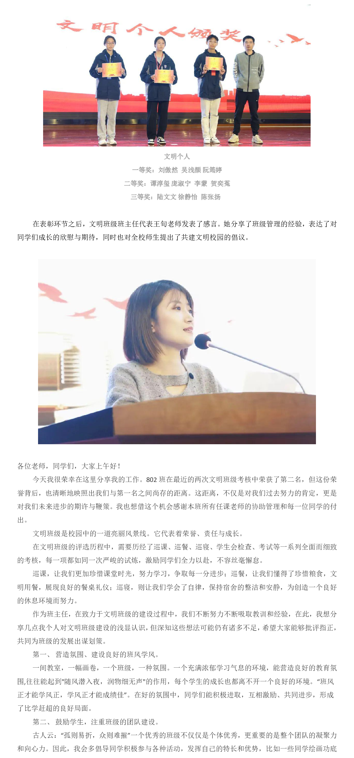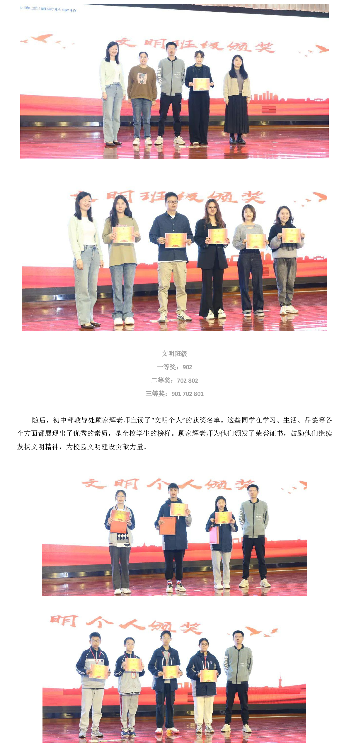 滨之湖实验学校初中部“三文明”评比表彰盛况