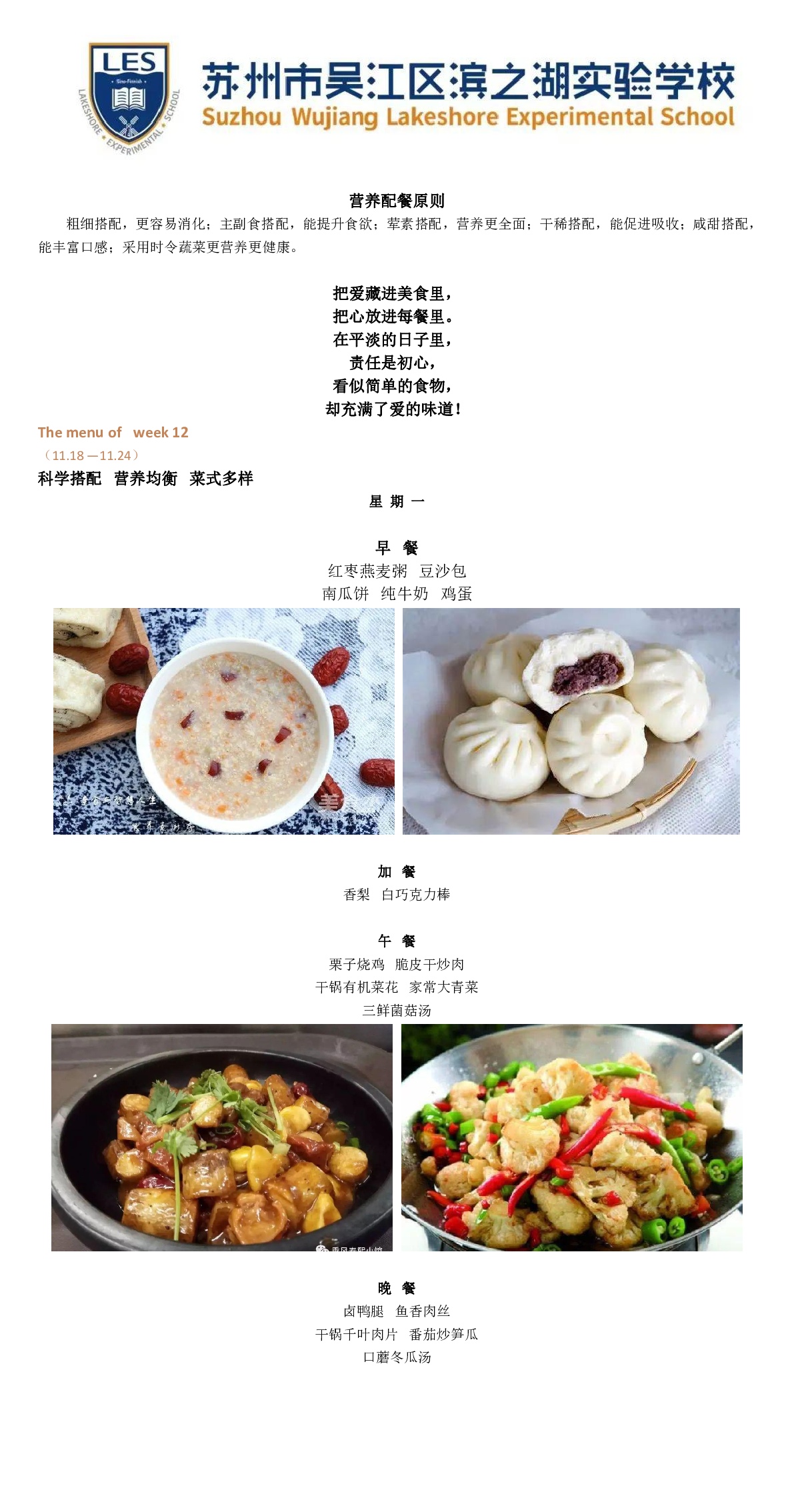 Menu for week 12 | 滨之湖实验学校美味食谱