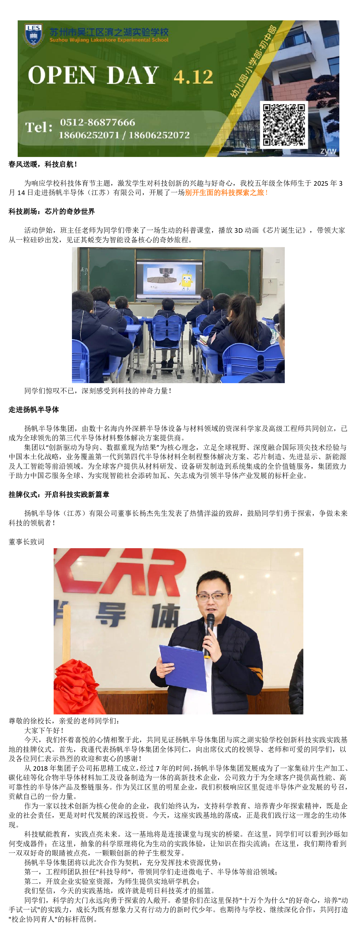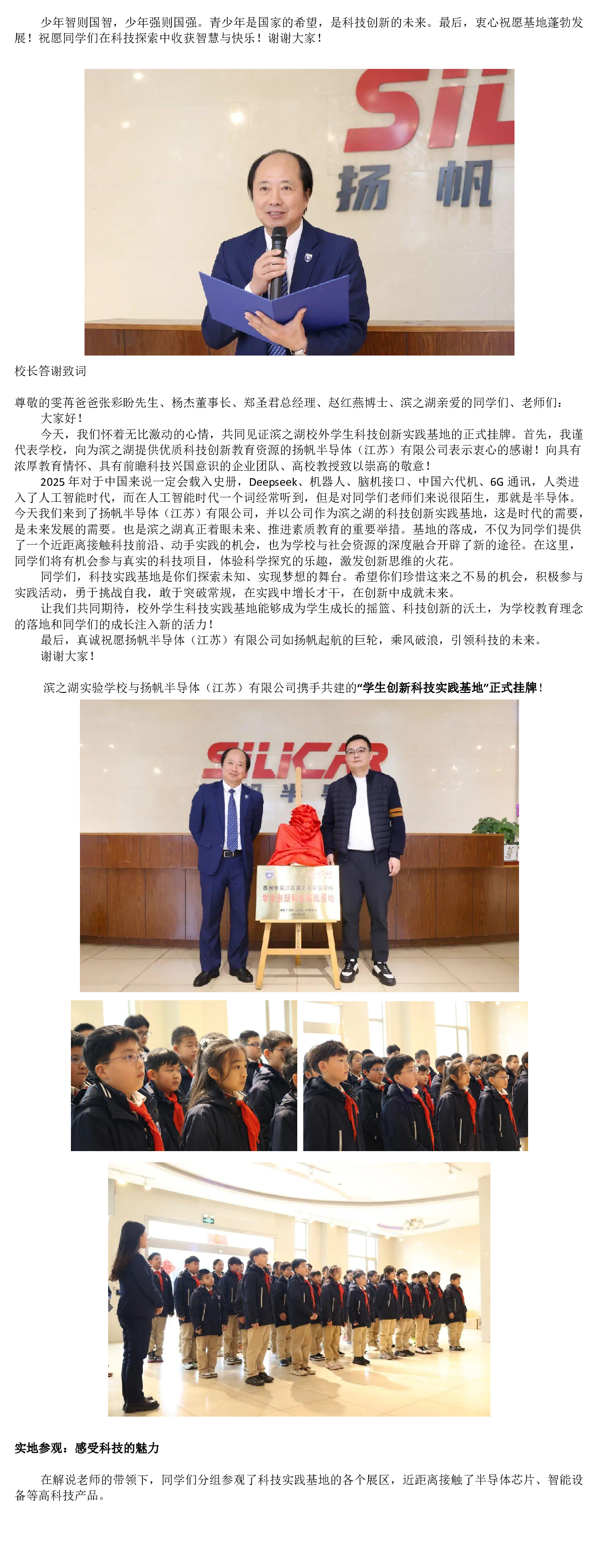 探索科技奥秘,点燃创新梦想!——滨之湖实验学校五年级学生参观扬帆半导体创新科技实践基地