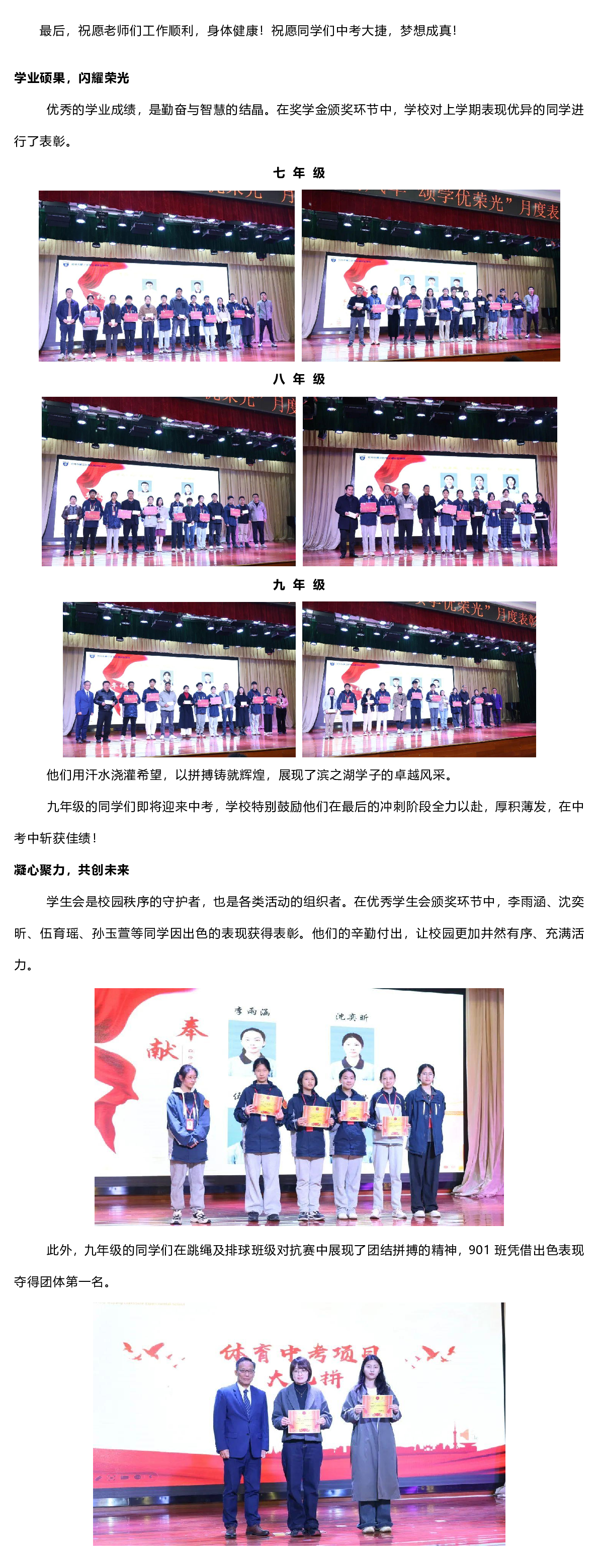 彰文明风华,颂学优荣光——滨之湖实验学校初中部二月“三文明”表彰暨奖学金颁奖仪式圆满举行