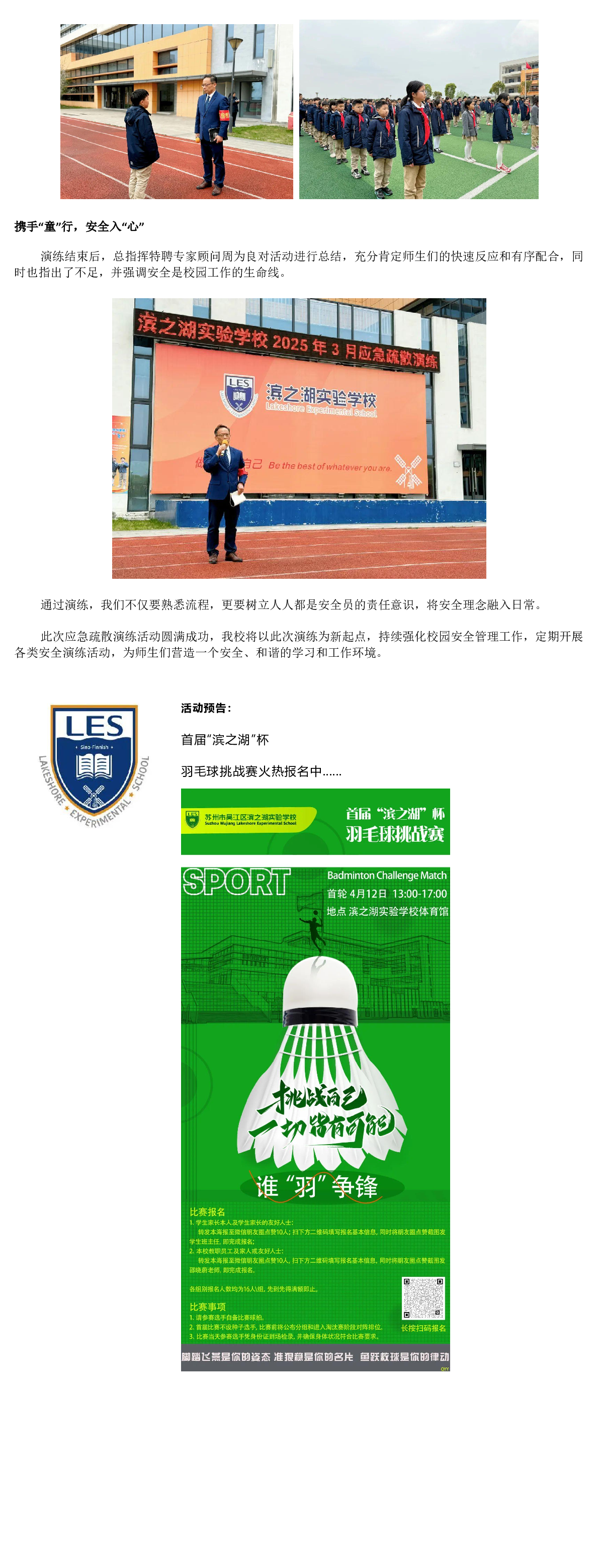 应急演练筑防线 童心护航守平安——滨之湖实验学校应急疏散演练教育