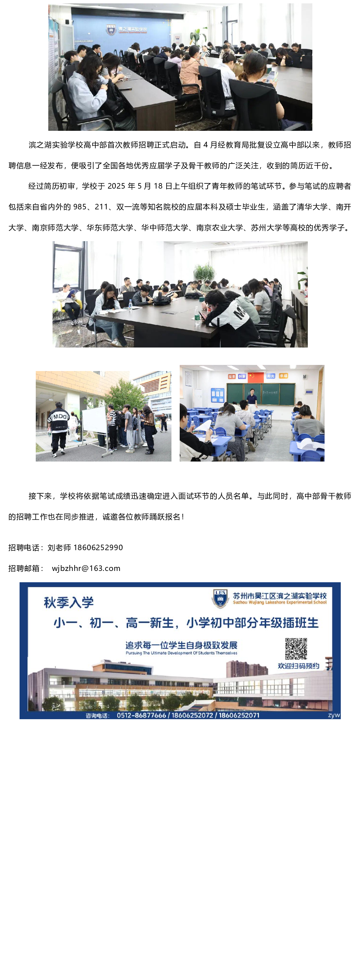 好消息——吴江区滨之湖实验学校新高一招生咨询啦