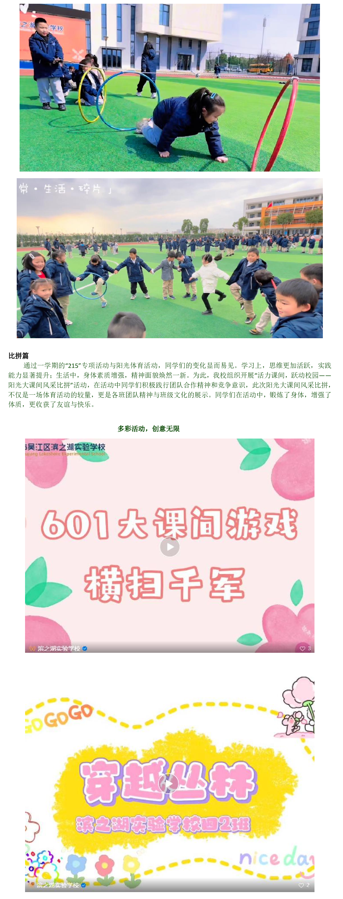 活力课间,跃动校园——滨之湖实验学校阳光体育系列活动