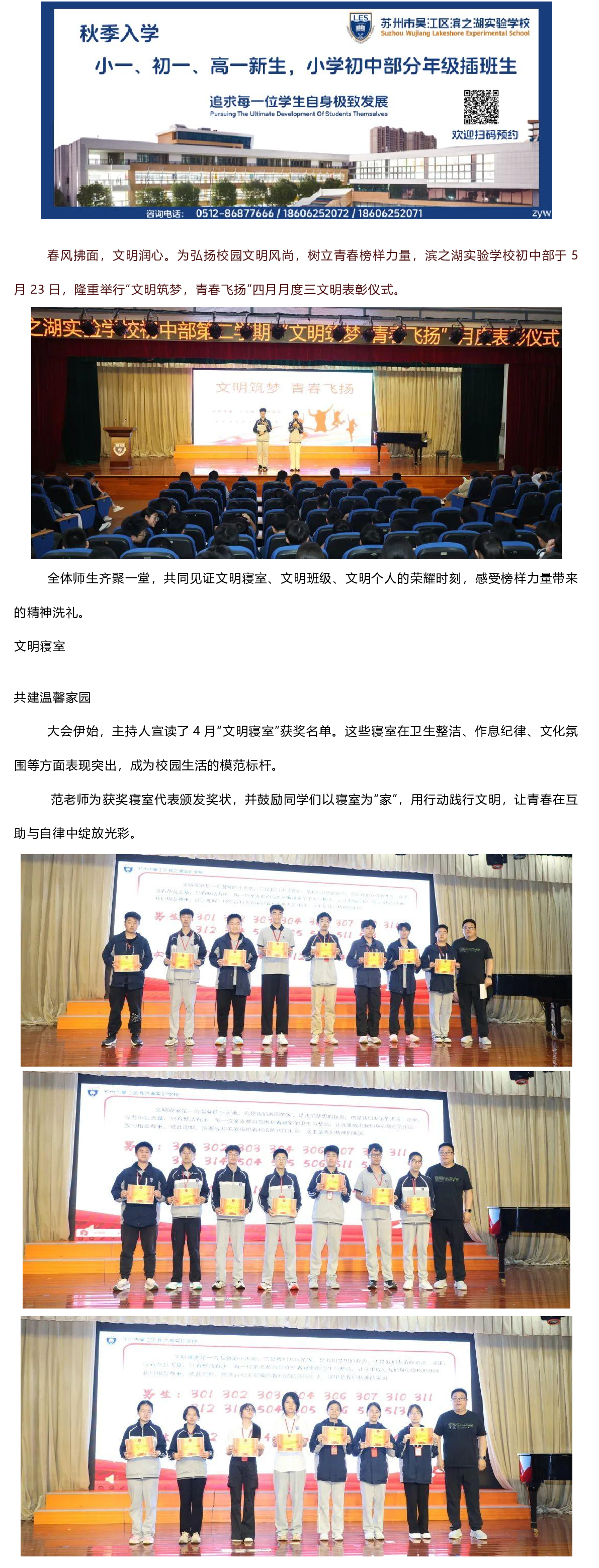 文明筑梦展风采,青春飞扬启新程 | 滨之湖实验学校初中部四月“三文明”表彰大会圆满落幕